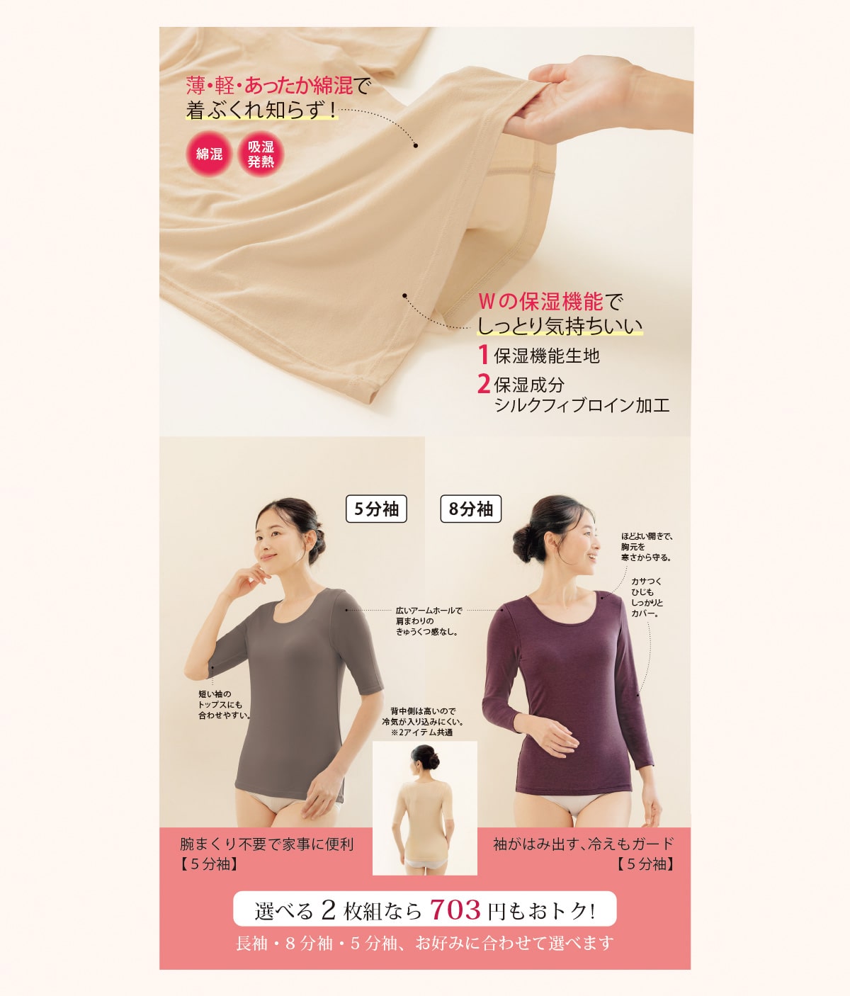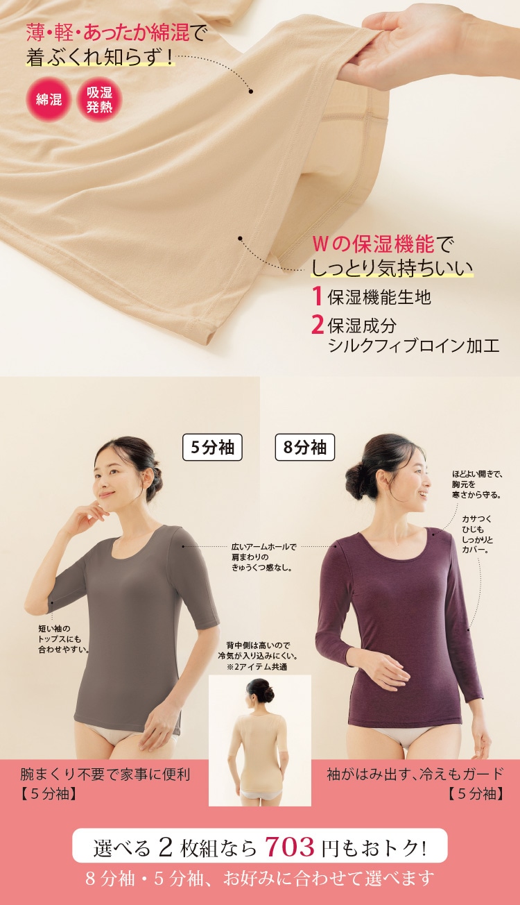 トップページ(最初のページ) > しっとり・あたたか!保湿インナー
