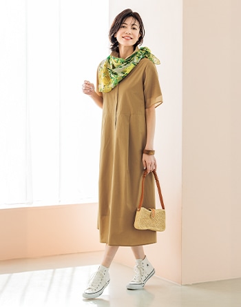 オーガンジー使いシャツワンピース