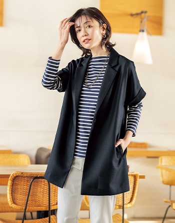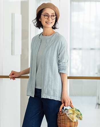尾州ジャカードカーデ×天竺インナーアンサンブル