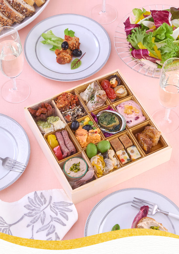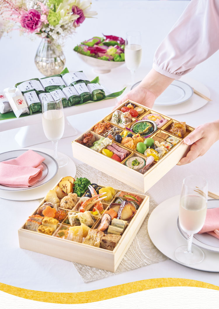 - 2解凍方法はおせちを冷蔵庫(5〜10℃)に移し、ラップをかけたままお重を重ねず一段ずつ並べ、約24時間かけて解凍してください。