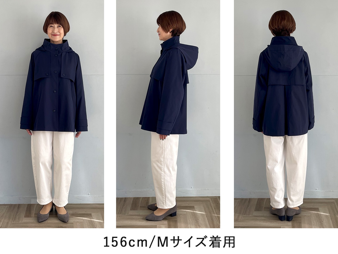 ●ほどよい厚みのポリエステル100%でしわになりにくい。フードはスナップボタンで取り外せます