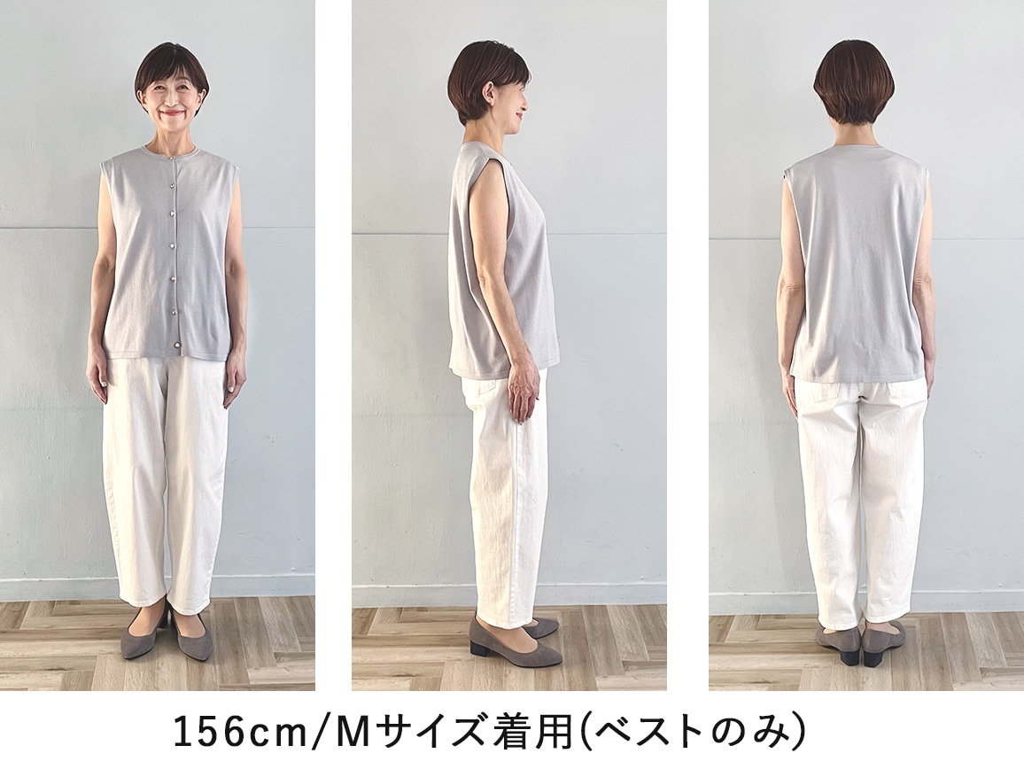 同じく金ボタンのついたベスト。前をとじてトップスのようにも着回せます。